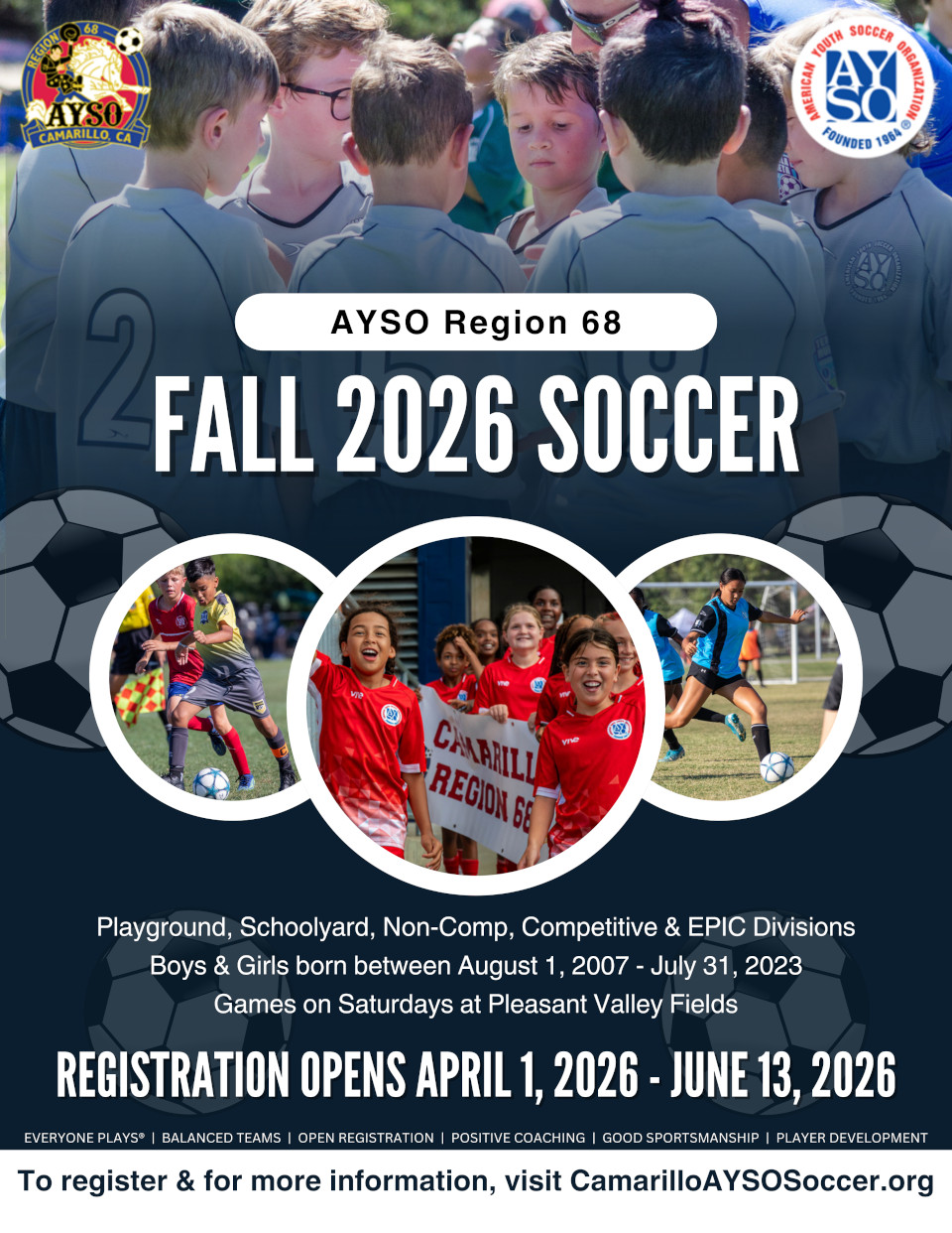 We are looking forward to having your player play with AYSO Region 68 and we appreciate your volunteering support!